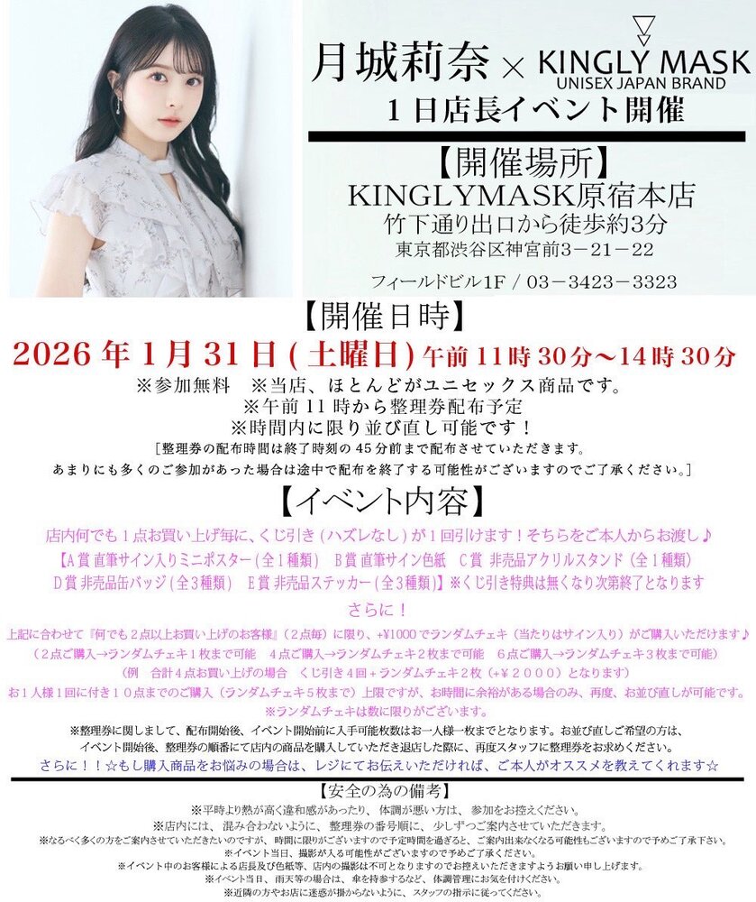 【イベント】月城莉奈×KINGLYMASK 一日店長イベント